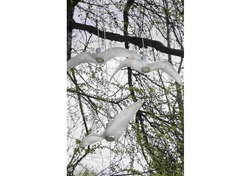 Night Birds Exterior designed by Boris Klimek for Brokis is an outdoor pendant lamp with cylindrical supporting structure in anodized metal. The lighting body is made of glass and adopts a dimmable LED light source with IP 54 certification. Night Birds Exterior is available in different models and finishes.