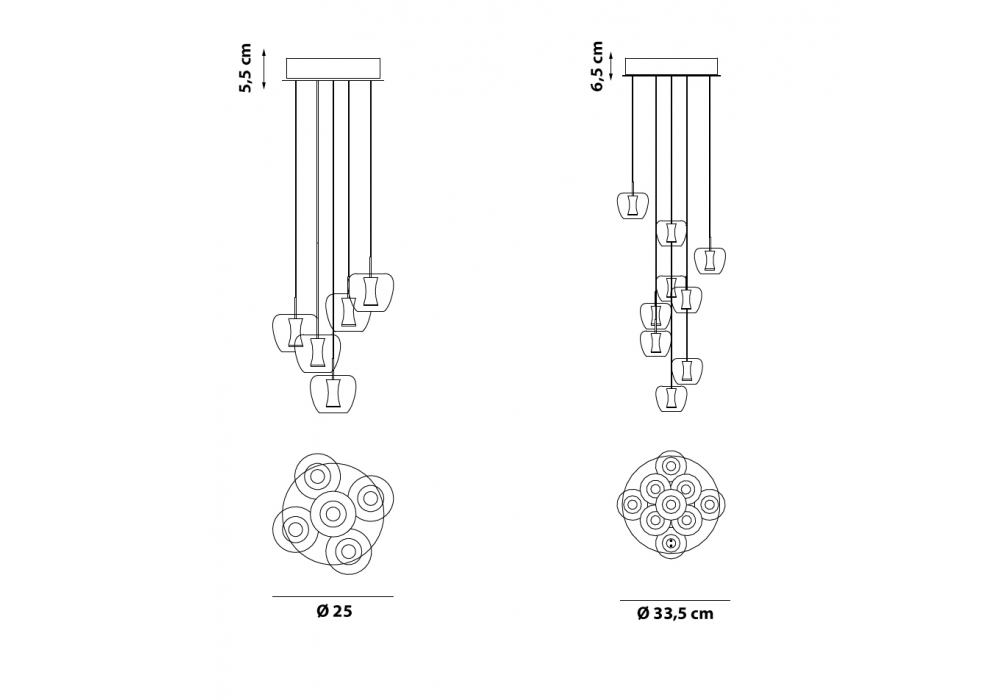 | Ceiling rose | Ø 25 x H 5,5 cm; Ø 33,5 x H 6,5 cm |