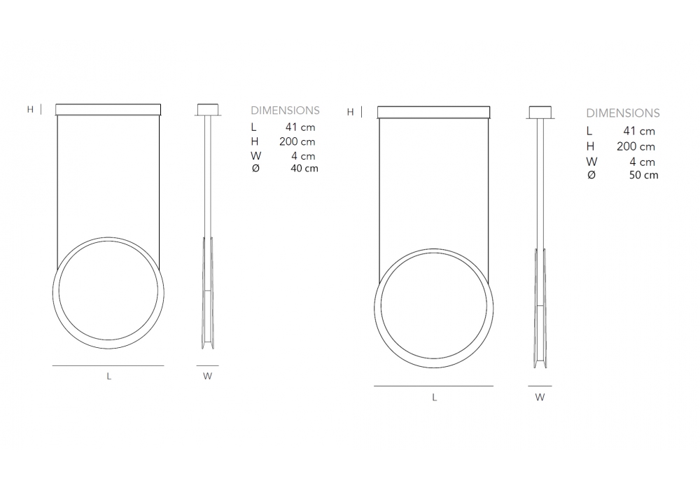 | Dimensions | Ø 40 x L 41 x W 4 x H 200 cm; Ø 50 x L 41 x W 4 x H 200 cm. |