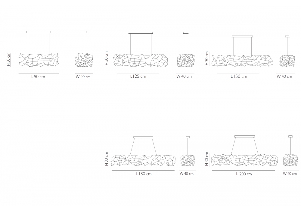 | Dimensions | L 90 x W 40 X H 30 cm; L 125 x W 40 X H 30 cm; L 150 x W 40 X H 30 cm; L 180 x W 40 X H 30 cm; L 200 x W 40 X H 30 cm. |