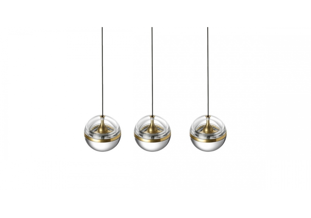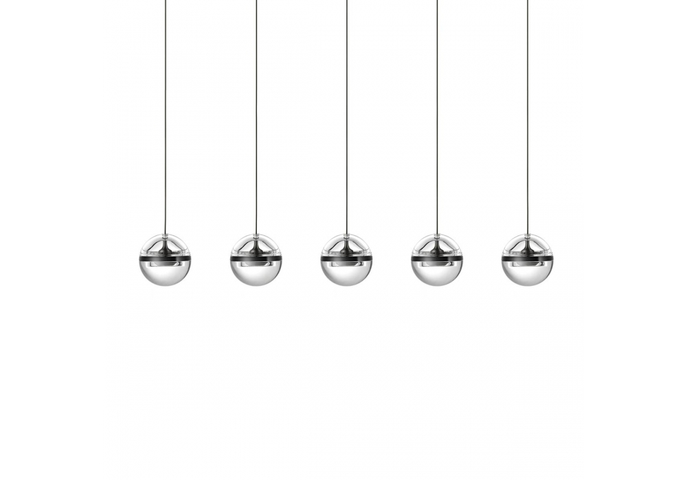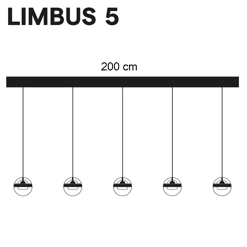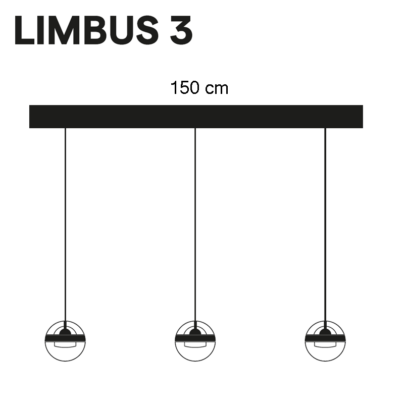 Limbus Linear designed by Emanuele Ricci for Lumina is a pendant lamp with quadrangular metal canopy and suspension cables in plastic material. The lamp holder is in turned aluminum in the anodized finish. The lamp body is spherical in glass and adopts a dimmable LED light source in different versions and gradations of light. Limbus Linear is available in different models and finishes.
