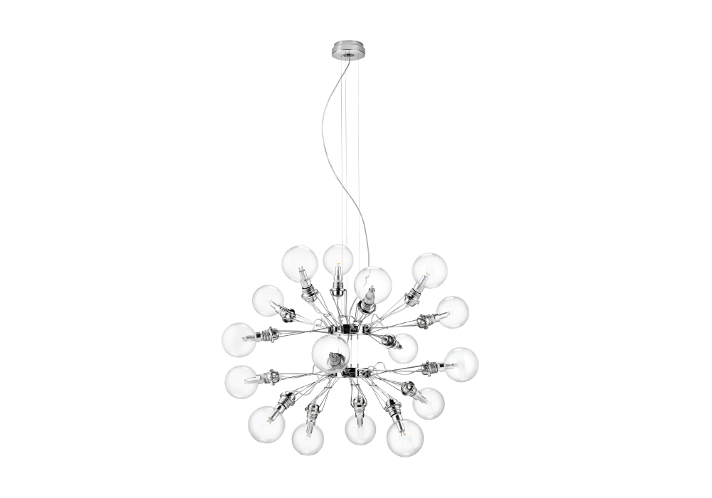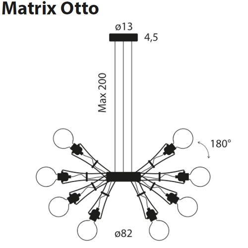 Matrix designed by Yaacov Kaufman for Lumina is a pendant lamp with circular canopy and metal suspension cables. The supporting structure is in aluminum and steel alloy with adjustable lamp holder arms. The light sources used are halogen or LED (not included). Matrix is available in two different versions; Matrix Otto or Matrix Double and in two different finishes; black soft-touch or brushed nickel.