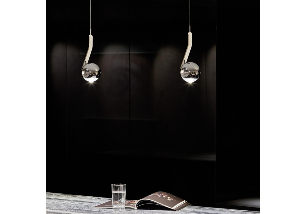 io Sospeso designed by Occhio is a dimmable LED suspension lamp adjustable in height or fixed, diffuser made of chromed or painted galvanized aluminum, glass and optical plastic. Available in different finishes and versions.