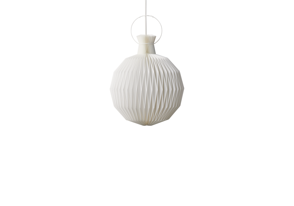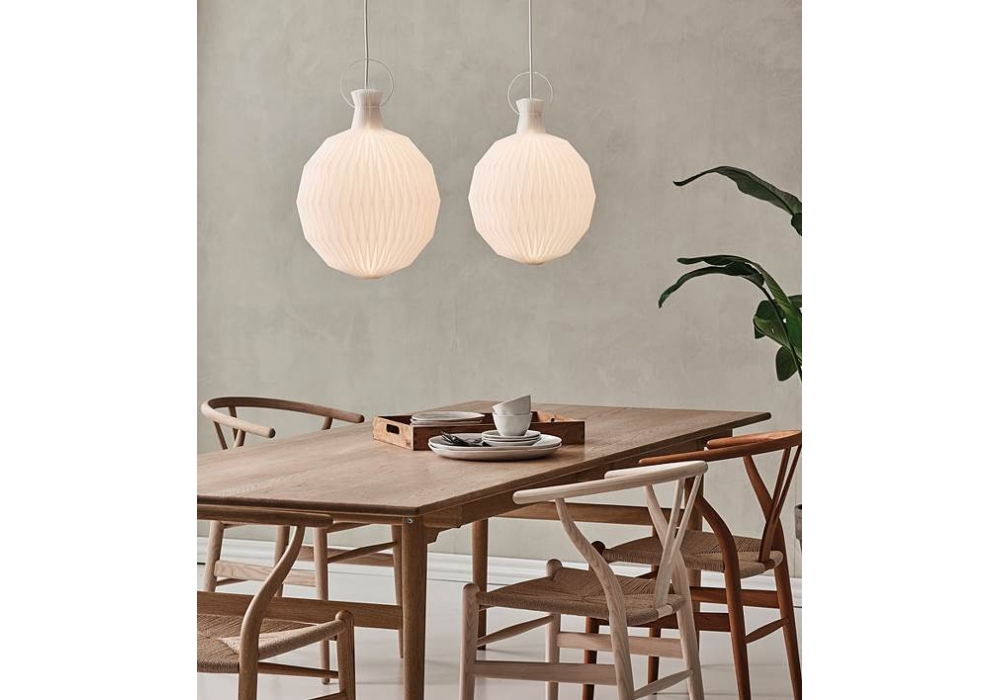 101 designed by Kaare Klint for Le Klint is a suspension lamp entirely structured in plastic material. The lampshade is ellipsoidal in shape with a surface enriched by regular and precise folds to ensure optimal light diffusion. The light source used is LED or halogen (not included) powered by a cable covered with white plastic. 101 is available in different sizes.