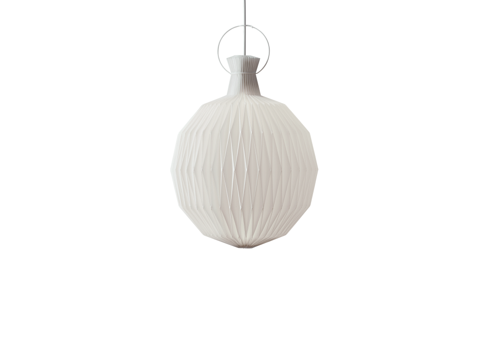 101 Paper designed by Kaare Klint for Le Klint is a suspension lamp structured in plastic and paper material. The lampshade is ellipsoidal in shape entirely built in paper material, with a surface enriched by regular and precise folds to ensure optimal light diffusion. The light source used is LED or halogen (not included) powered by a cable covered with white plastic. 101 Paper is available in different sizes.