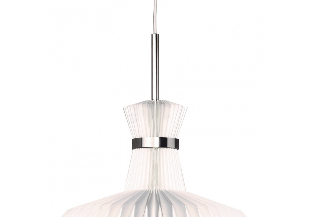 101 Steel / Brass designed by Kaare Klint for Le Klint is a suspension lamp structured in plastic and metal material. The lampshade is ellipsoidal in shape entirely made of plastic material with a surface enriched by regular and precise folds to ensure optimal light diffusion. The light source used is LED or halogen (not included), powered by a cable covered with white plastic. 101 Steel / Brass is available in different sizes and two different models with details in steel or brass.