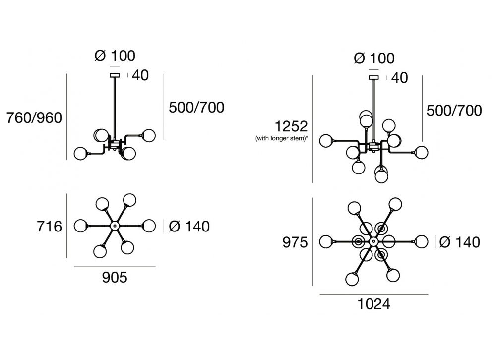 | Dimensions | 90,5 x 71,6 x H 760/960 cm; 102,4 x 97,5 x H 125,2 cm. |