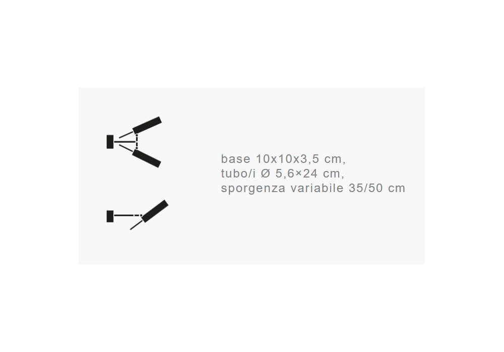 | Dimensions | base 10x10x3.5 cm, tube (s) Ø 5.6 × 24 cm, variable projection 35/50 cm |