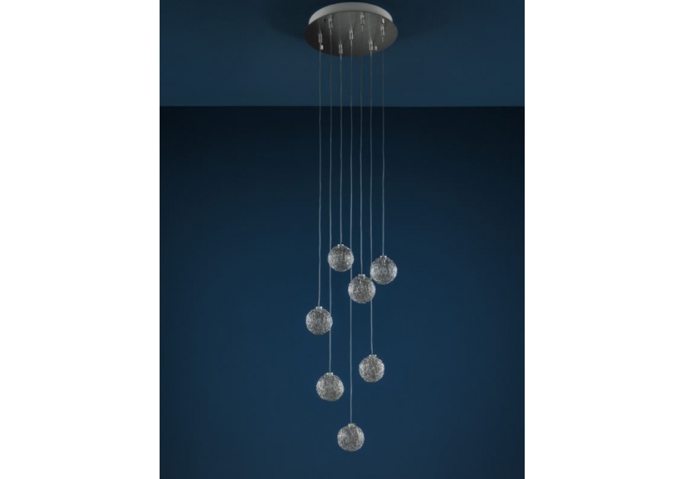 Sweet Light Chandelier designed and produced by Catellani & Smith is a suspension lamp with satin metal base and aluminum wire spheres. Available with round or square base, in different sizes, and with a variable number of diffusers. Each model has different lengths of the suspension cable.
