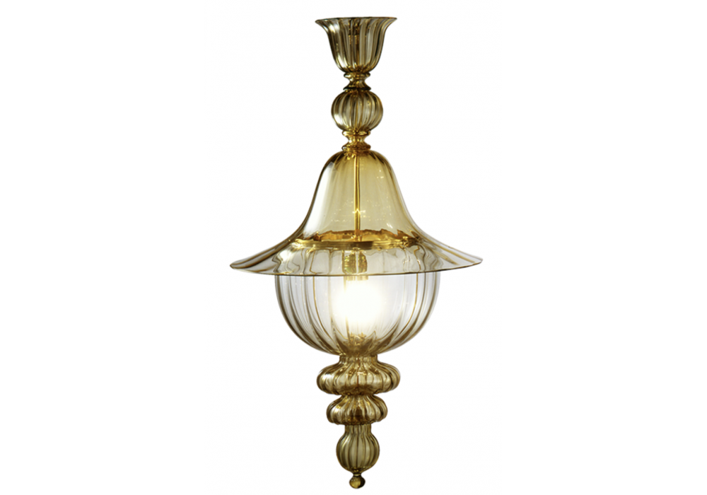 Doge 839.10 designed by Napoleone Martinuzzi for Venini is a suspension lamp in blown glass handmade with the rigadin technique, available in 3 finishes. Edition numbered by year.
