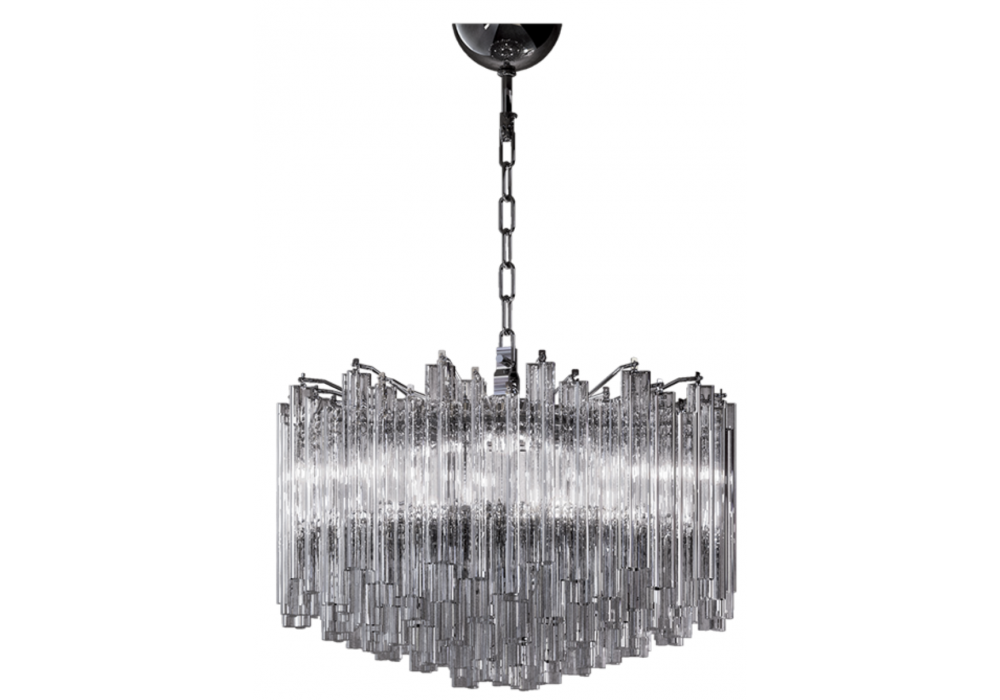 Trilobi designed and produced by Venini is a dimmable LED pendant lamp, with hand-blown glass elements. The metal details are in a chrome finish.
