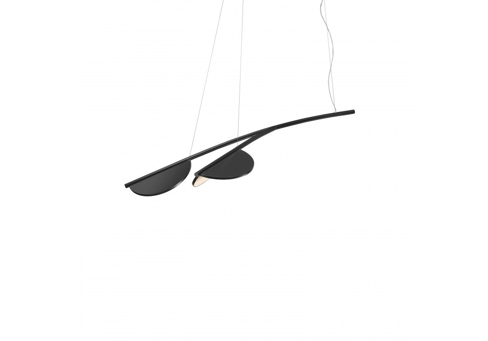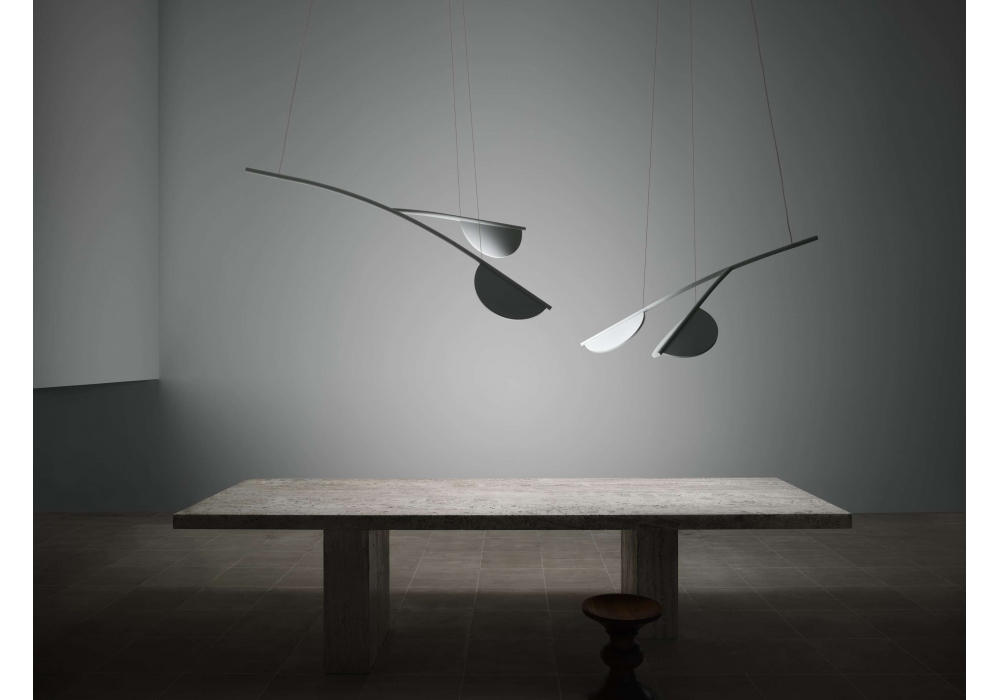 Almendra S2 Y designed by Patricia Urquiola for Flos is a diffused light pendant lamp with a tubular aluminum structure and CNC aluminum terminals, available with a matte or metallic finish. Equipped with integrated Edge Lighting technology, it allows the rotation of the light elements in 60° steps to modulate the direction of the light. Metal rosette with a matte white or primer finish, allows the use of different intensity adjustment systems: 1-10V, DALI, button or potentiometer. LED light source included.