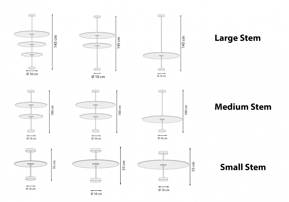 | Dimensions | Ø 18 x H 145 cm; Ø 18 x H 100 cm; Ø 18 x H 55 cm. |