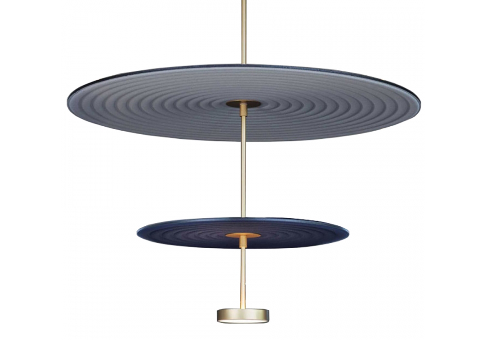 Feel designed by Sara Moroni is a pendant lamp made with a tubular metal structure and sound-absorbing fabric discs in different finishes. The light source is of the LED type in different shades of light. Feel is available in various models and sizes.