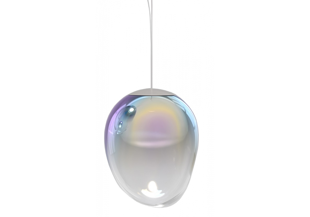 Stellar Nebula designed by BIG - Bjarke Ingels Group for Artemide is a circular pendant lamp entirely made of Iridescent-coloured blown glass. The light source adopted is LED type with push dimmability system. Stellar Nebula is available in different sizes.