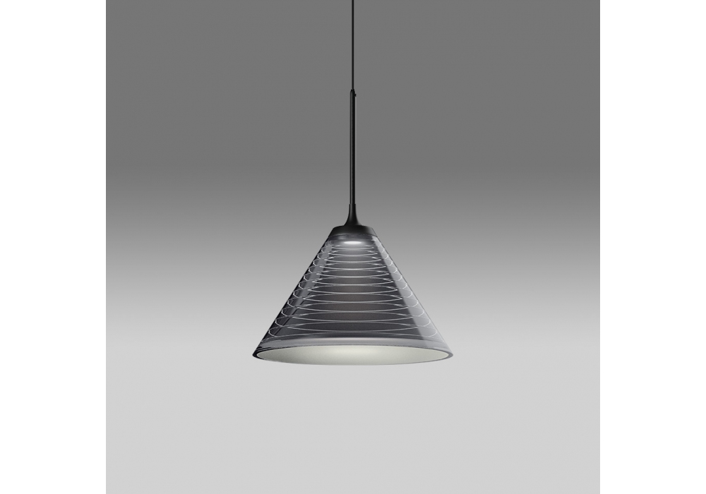 Look at Me Track designed by Alida Catella and Silvio De Ponte for Artemide is a pendant lamp on a track system. The diffuser is conical in shape in black methacrylate with a metal supporting structure. The light source adopted is a dimmable LED type. Look at Me Track is available in different sizes.