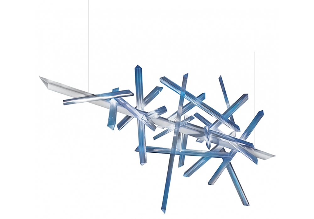La Traviata designed by Robert Wilson for Slamp is a pendant lamp structured by several intersecting elements made entirely of Lentiflex® and methacrylate. The light sources adopted are dimmable RGB LEDs. La Traviata is available in different sizes.