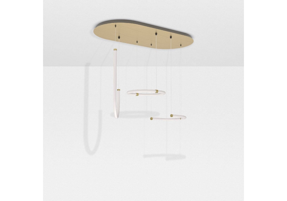Unseen Triple designed by Studiopepe for Petite Friture is a LED lighting system with 3 pendants. Made with silicone, polycarbonate, brass and painted steel.