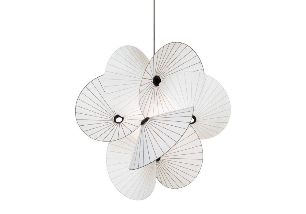 Serpentine Designed by Front for Moooi is a suspension lamp with shade made from printed non-woven PES, coated steel pendant. The lighting design originated from twisting and turning a piece of paper. By playing with the tension and natural flow—discovering the limits of the different shapes paper could adopt. The dark lines create the effect of an endless upwards spiral.