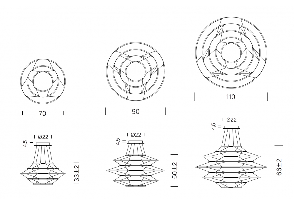 | Dimensions | Ø 70 x H 33+2 cm; Ø 90 x H 50+2 cm; Ø 110 x H 66+2 cm. |