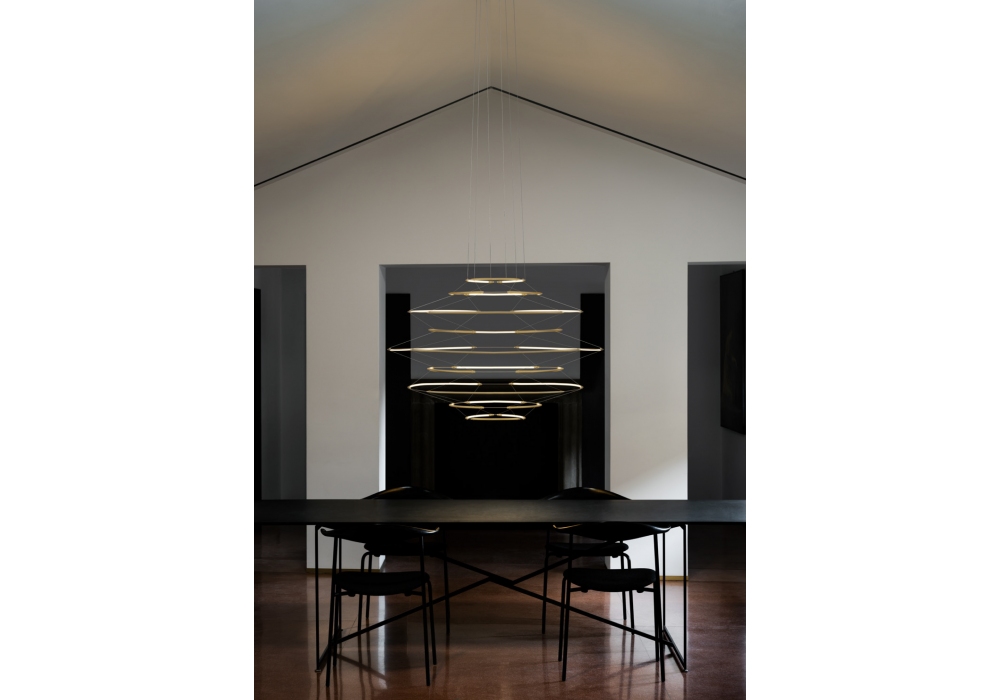 Drop designed by Arihiro Miyake for Nemo is a circular pendant lamp with concentric circles made of painted aluminum. The light source used is of the LED type. Drop is available in different models and finishes.