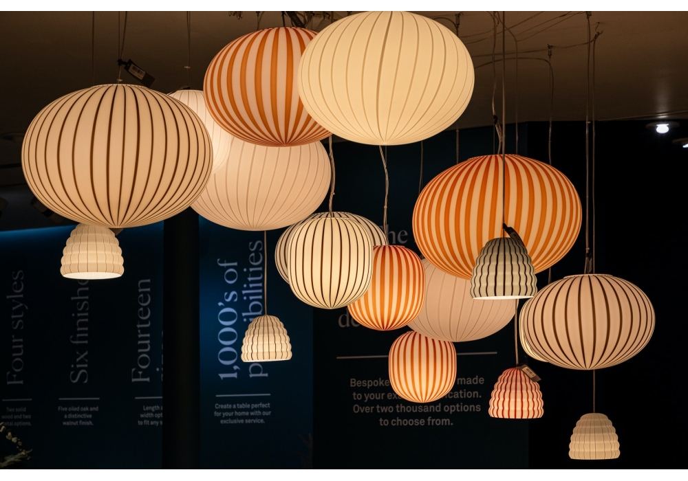 Filigrana Light designed by Sebastian Wrong for Established & Sons is a suspension lamp in blown glass and opal ceramic with polished stainless steel reflector, powder coated steel fixings, steel suspension cable. Available in different finishes and sizes.