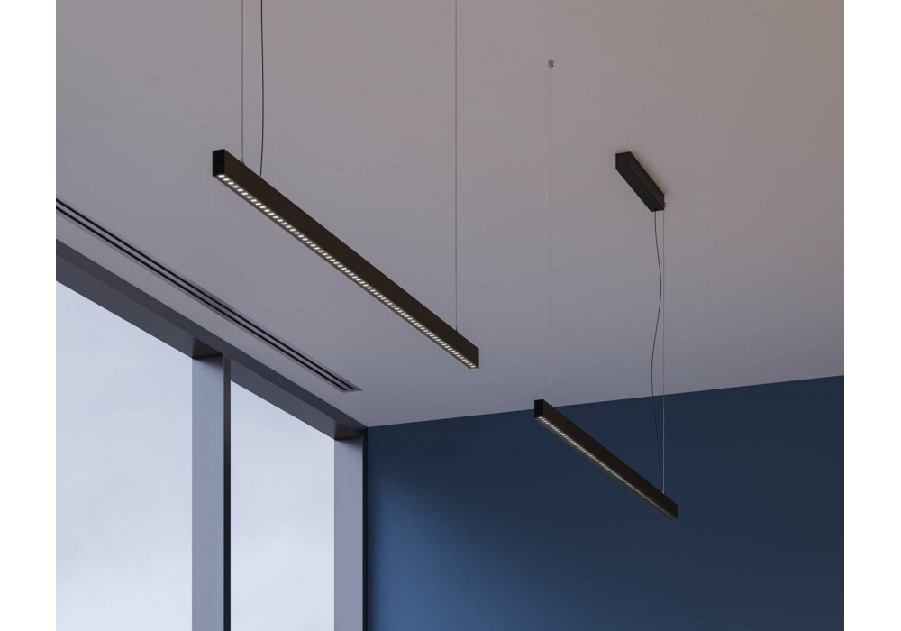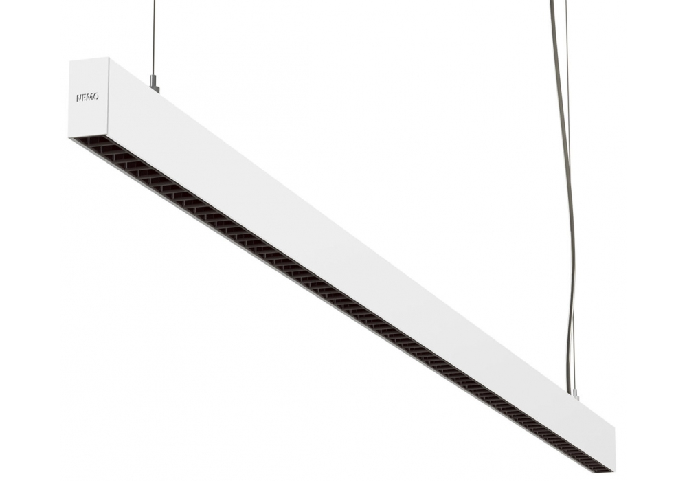 Zirkol Linear UGR designed and produced by Nemo Studio is a pendant lamp with a quadrangular shape in painted aluminum. The light source adopts Dali dimmable LED type with different gradations of light. Zirkol Linear UGR is available in different finishes.