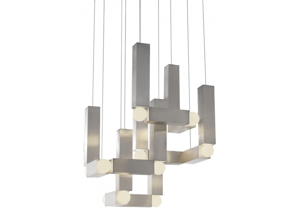 Vesper produced and designed by Lee Broom is a pendant lamp with a quadrangular shape structured by small aluminum squares and opal glass. The light source used is of the dimmable LED type. Vesper is available in different models and finishes.