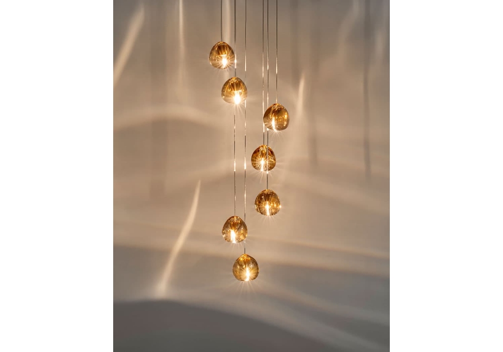 Mizu 7 designed by Nicolas Terzani for Terzani is a pendant lamp with circular structure in painted or brushed nickel. The diffuser is in crystal and screens a dimmable LED or halogen light source and in different versions. Mizu 7 is available in different finishes.