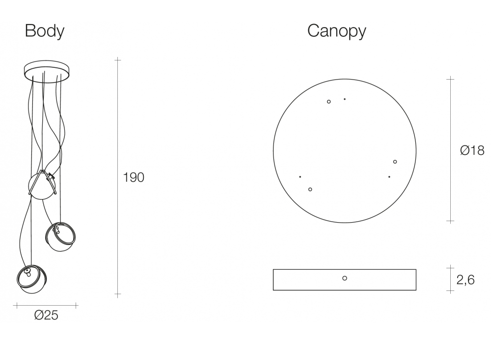 | Ceiling rose | Ø 18 x H 2,6 cm. |