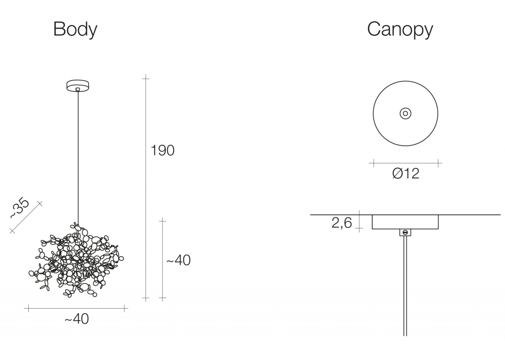| Ceiling rose | Ø 12 x H 2,6 cm (Standard); Ø 19,8 x H 5,2 cm (Dali). |