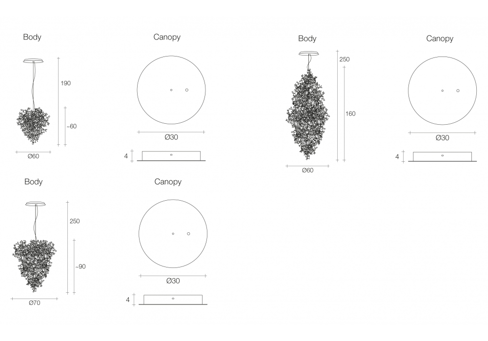 | Dimensions | Ø60 x H 60 cm; Ø70 x H 90 cm; Ø60 x H 160 cm. |