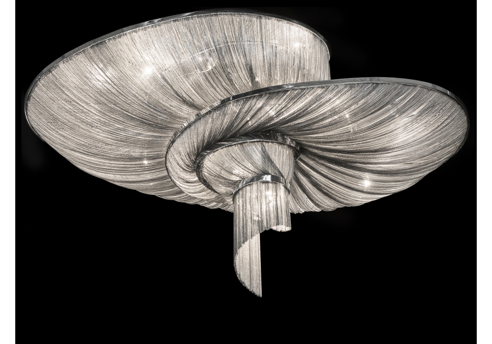 Epoque designed by Stefano Papi & Saviz Yaghmai for Terzani is a chandelier with metal supporting structure and plated brass mesh pendants. The light source used is an integrated LED dimmable in different shades of light. Epoque is available in various models and finishes.