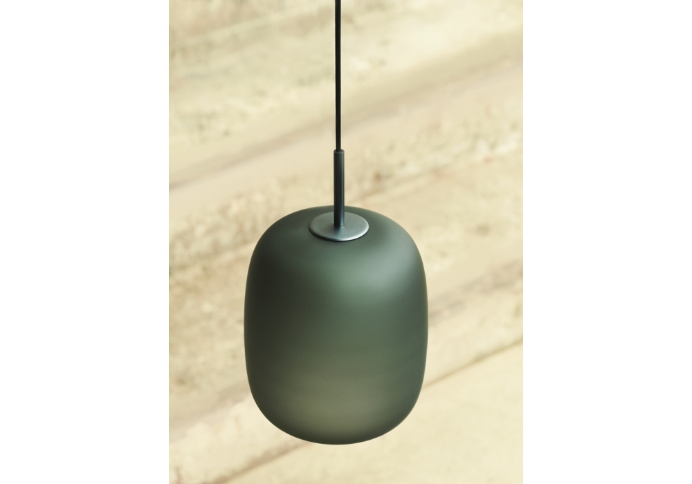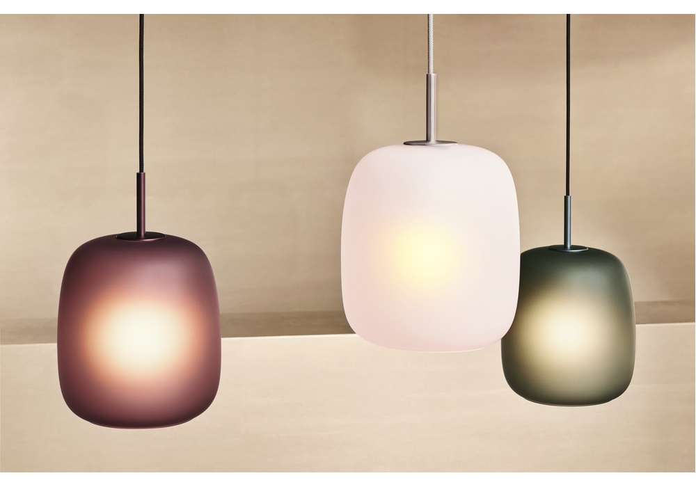 Maluma™ designed by Fumie Shibata for Fritz Hansen is a pendant lamp made with hand-blown colored frosted glass shade and matching textile cable. Available in different finishes.