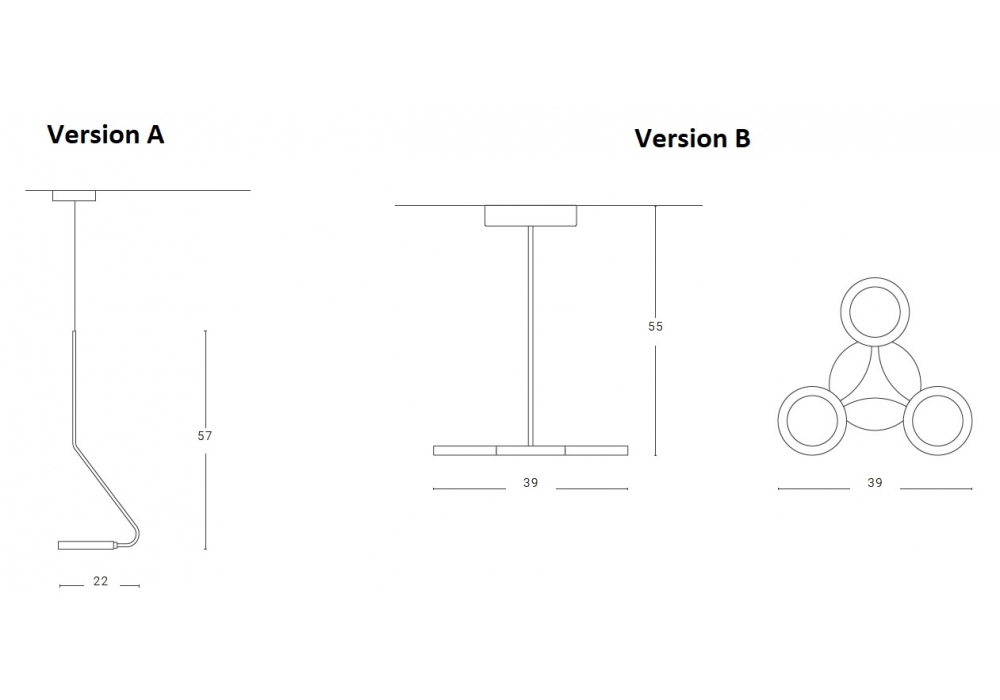 | Ceiling rose | A_ Ø 16 x H 4 cm; B_ Ø 20 x H 4 cm. |