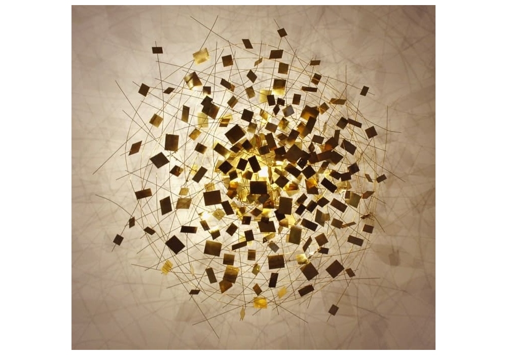 Éclat designed by Ombre Portée is a pendant lamp made in brushed and waxed brass. Brass driver box.