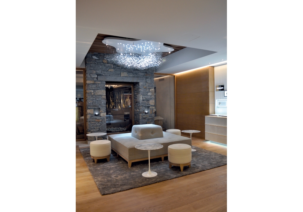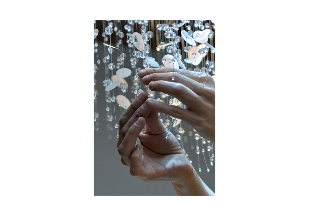 Nimbostratus designed by Ombre Portée is a pendant lamp made with diffusers, crystal and glass beads. Painted wooden driver box.