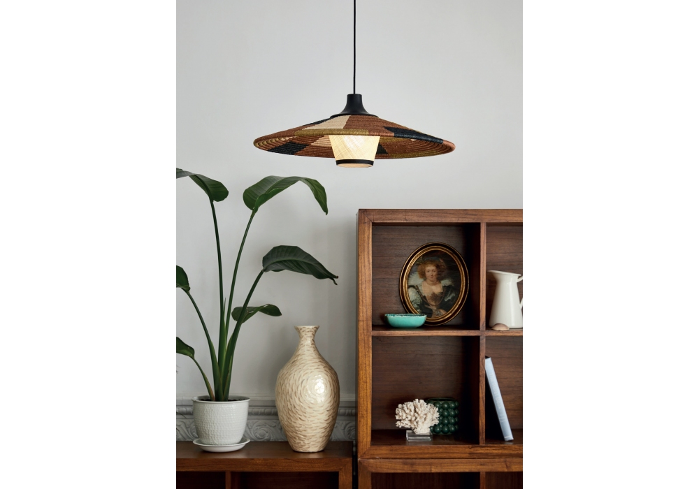 Parrot designed by Jette Scheib for Forestier is a pendant lamp made of cord with a colored abaca cord. Available in different finishes and dimensions.