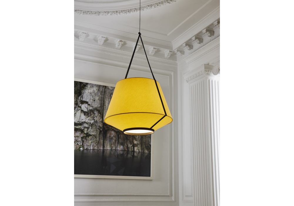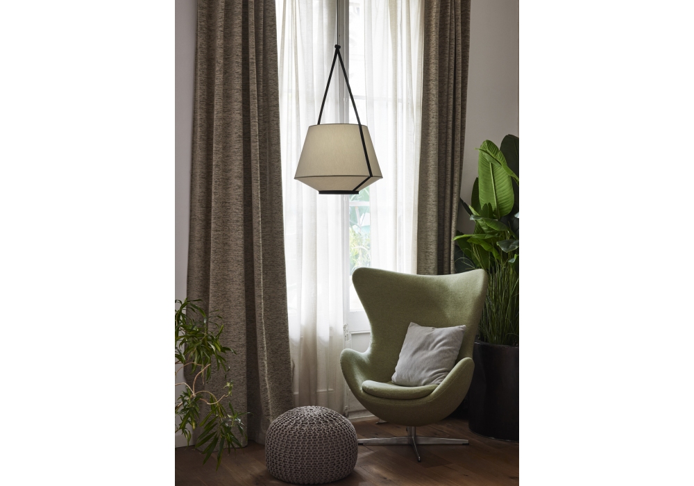 Carrie designed by Jette Scheib for Forestier is a suspension lamp made of velvet and cotton with a textile cord. Available in different finishes.