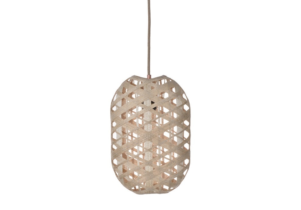 Capsule designed by Anon Pairot for Forestier is a pendant lamp made of metal covered with an abaca cord. Available in different finishes and dimensions.