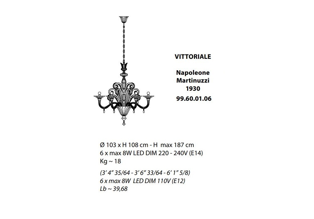 Vittoriale designed by Napoleone Martinuzzi for Venini is a suspension lamp in blown glass with rigadin manufacturing and gold leaf decoration. The metal parts are gold colored. Edition numbered by year.
