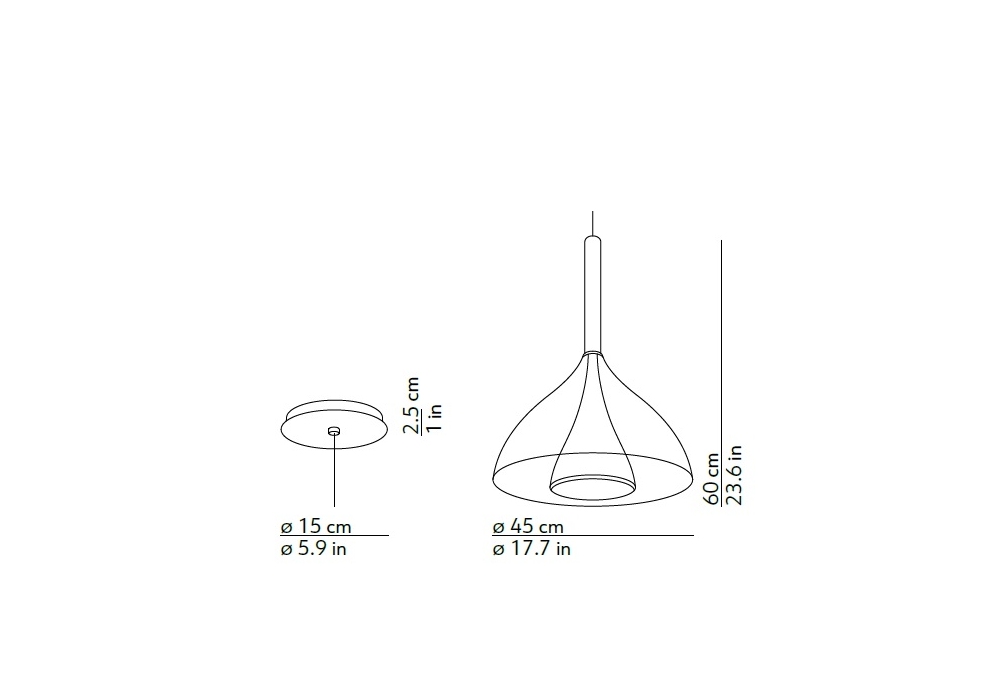 Floob designed by Karim Rashid for Kundalini is a direct light suspension lamp made in thermoformed and extruded Plexiglas with turned and laser cut aluminum reflector and etched glass diffuser.