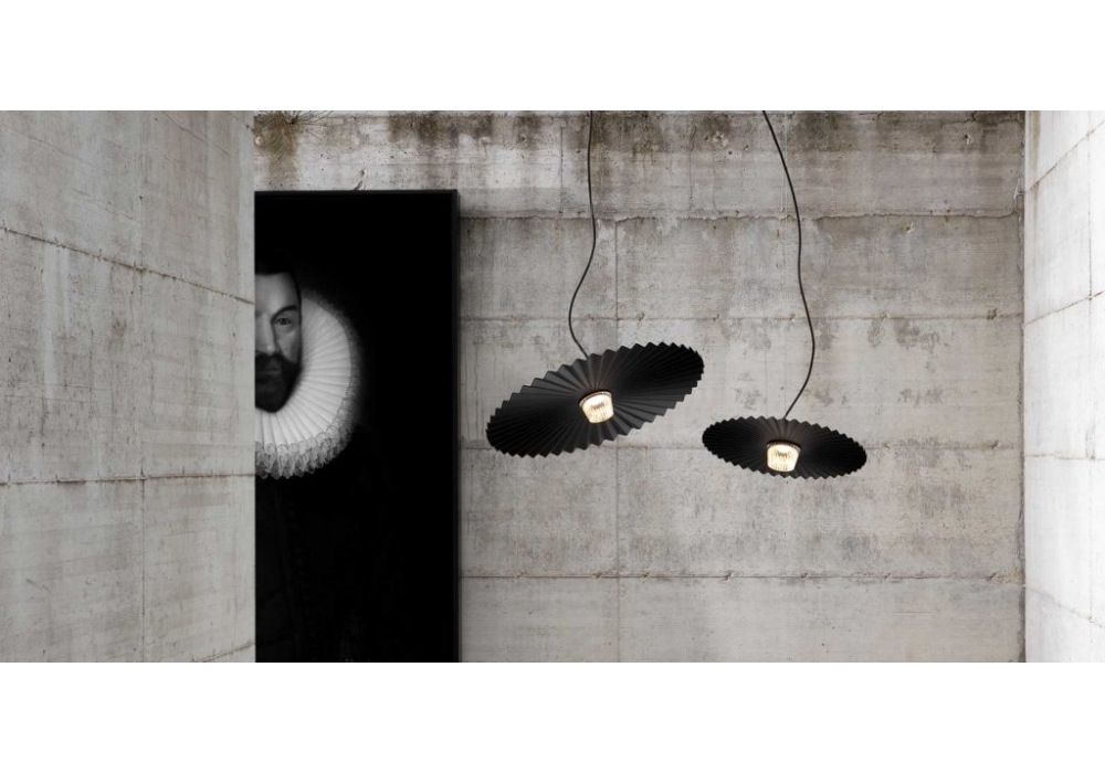 Gonzaga designed by Matteo Ugolini, Luca De Bona, Dario De Meo for Karman is a suspension lamp with transparent matt black metal ceiling rose and aluminum structure in different finishes. Available in various sizes.
