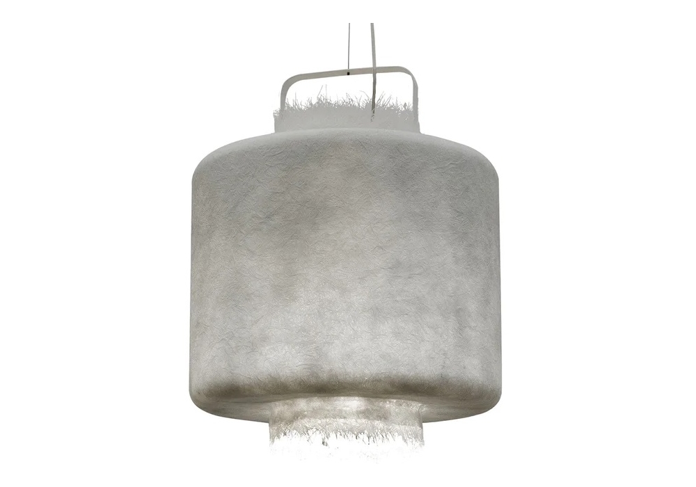 Kimono Outdoor designed by Matteo Ugolini for Karman is a suspension lamp with matt white metal ceiling rose and white fiberglass structure. Available in various sizes.