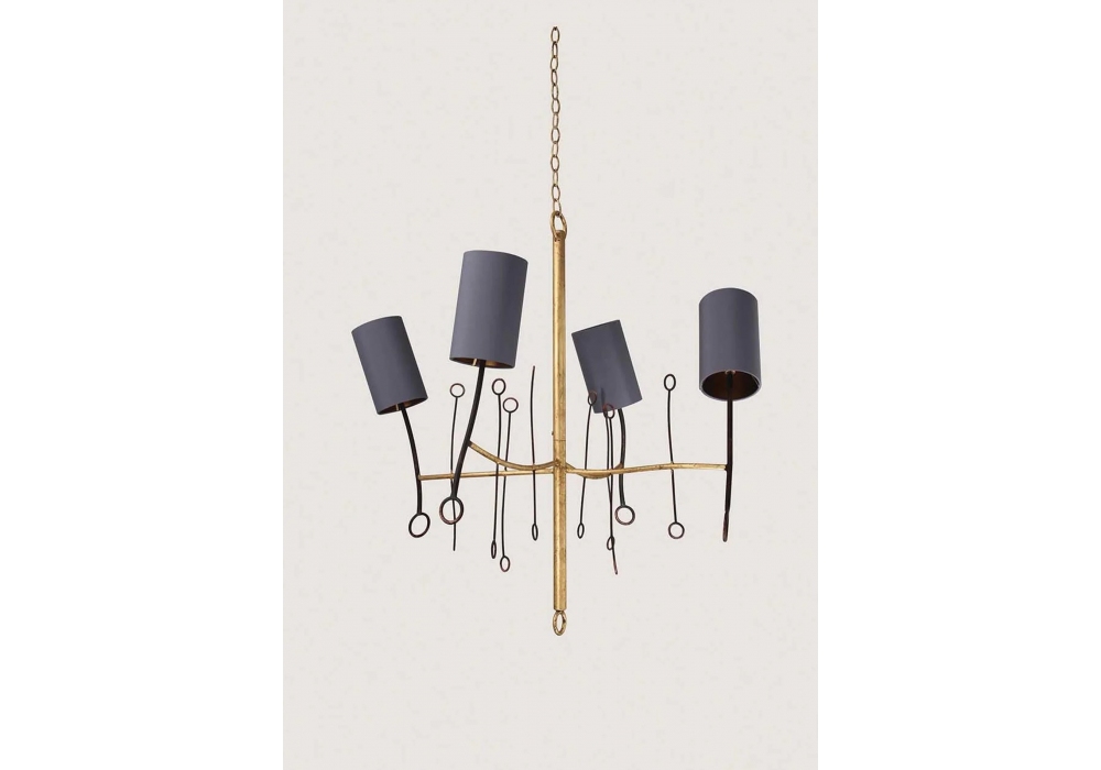 Lollipop designed by Gareth Devonald Smith for Porta Romana is a chandelier with supporting structure in forged steel painted in different finishes. The lampshades are cylindrical in fabric and adopt a light source with a G9 type LED connection. Lollipop is available in different finishes and versions.