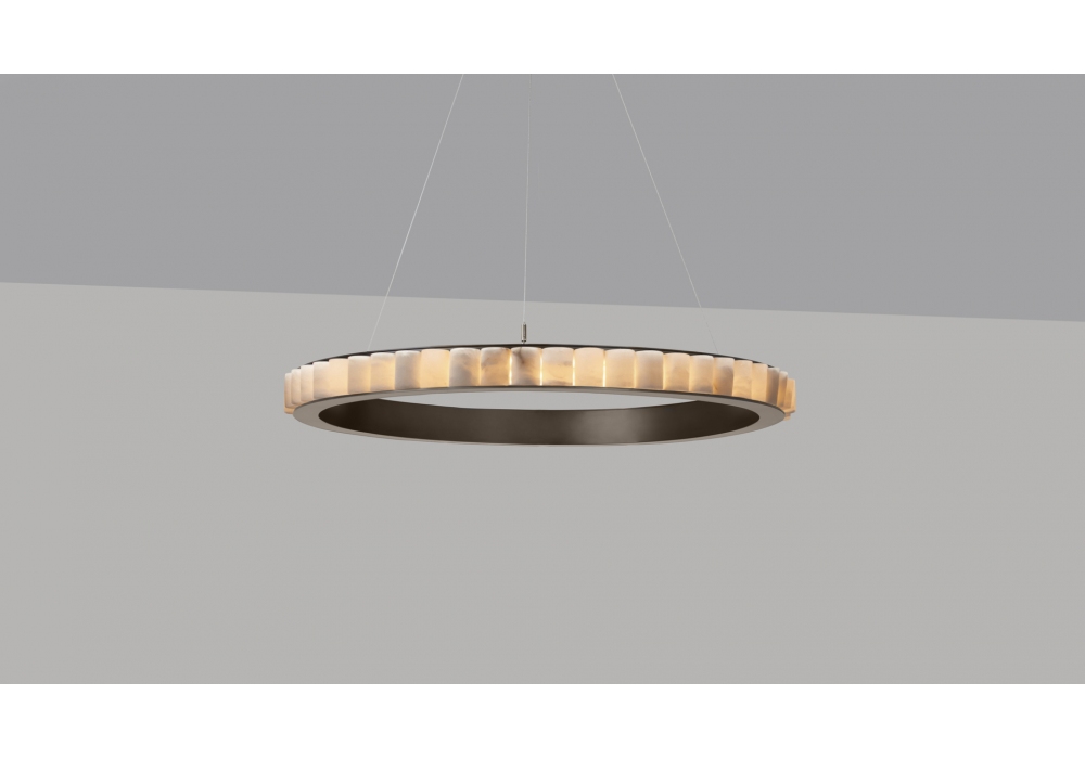 Avalon designed by CTO Lighting is a LED pendant lamp made of bronze or satin brass, details in alabaster. Stainless steel cable. Available in 2 dimensions.