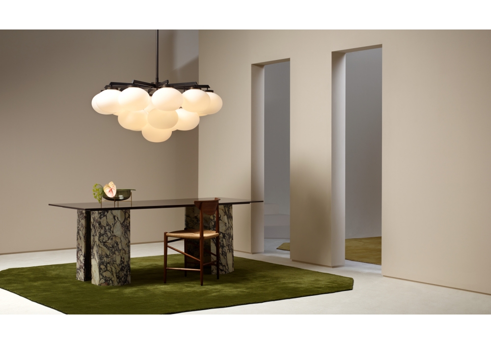 Cloudesley designed by CTO Lighting is a pendant lamp made of bronze or satin brass and opal glass diffusers. Available in 3 dimensions.