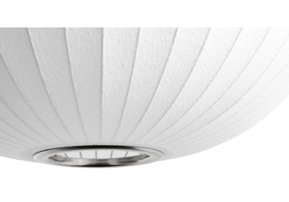 Nelson Ball Bubble designed by George Nelson for Hay is a pendant lamp with lampshade in polymer fabric, frame in painted and brushed metal and upper and lower ring in nickel. Cable with white PVC insulation. Available in different dimensions.