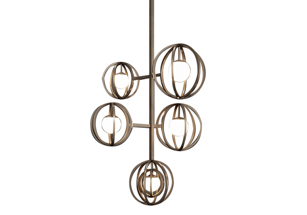 Copernico designed by Emmemobili is a suspension lamp made in natural or burnished brass. Available in different models. The height of the chandelier can vary from a minimum of cm. 150 to a maximum of cm. 200. Dimmable version available on request and with extra charge.
