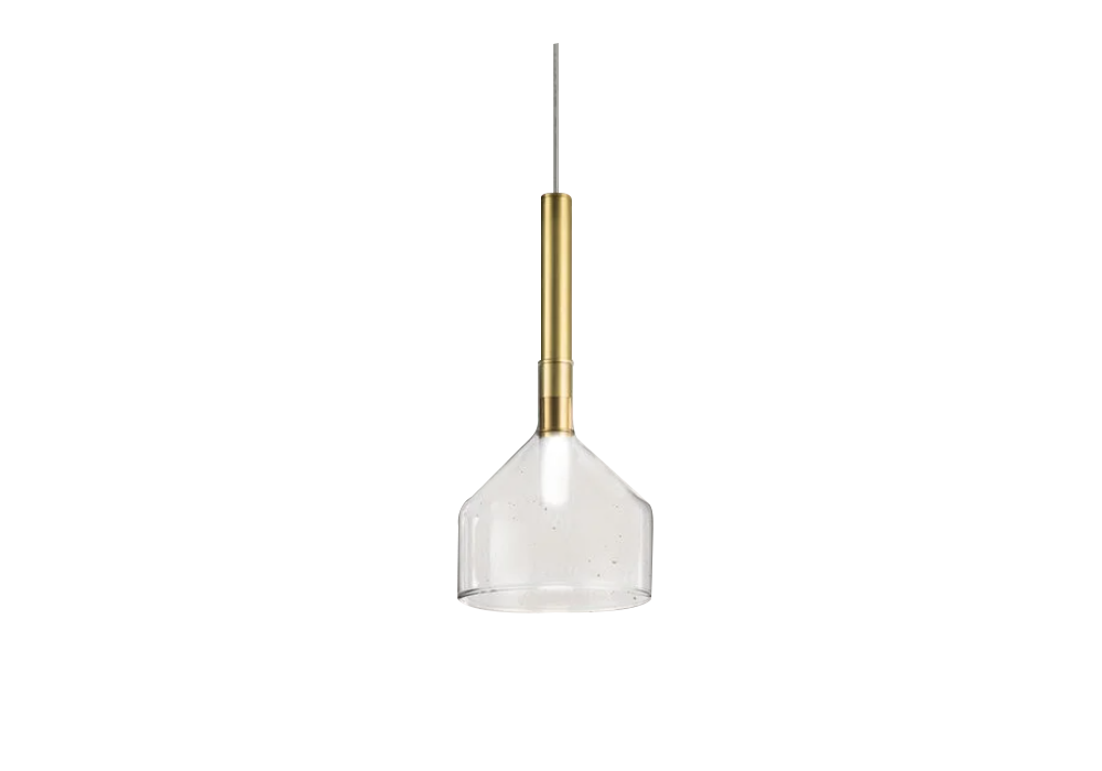 Alchimia designed by Brogliato Traverso Studio for Il Fanale is a pendant lamp with brass supporting structure. The diffuser is made of glass and shields a dimmable LED light source. Alchimia is available in different models and finishes.